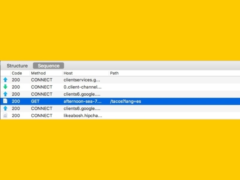 For this case, we will use the Taco App from previous examples. Let’s say that the service we are using supports multiples languages, but for whatever reason changing the language in our App doesn’t make the right request and it’s doing the following: