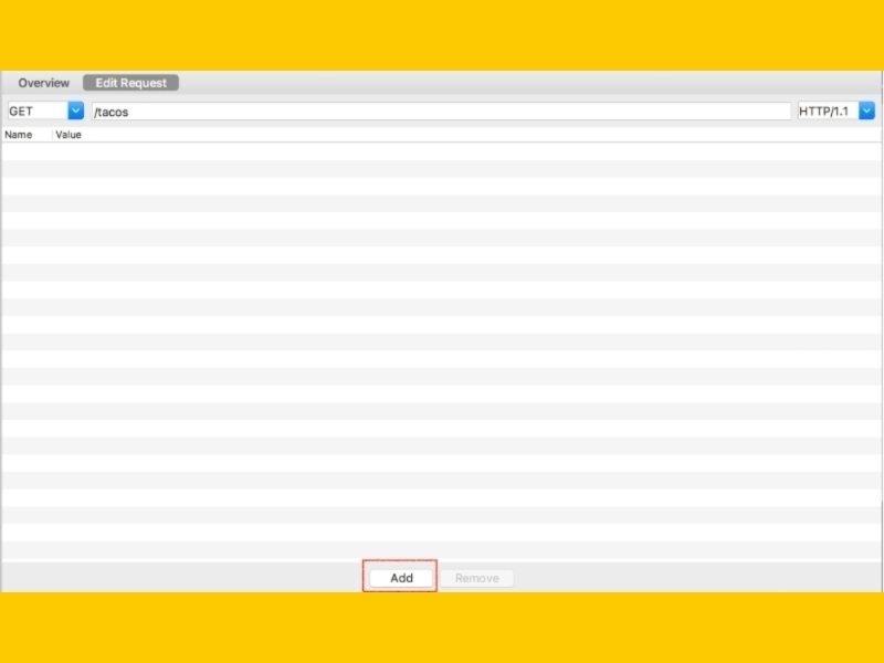 - Again in the Edit Request tab, click the Add button to add a new parameter.